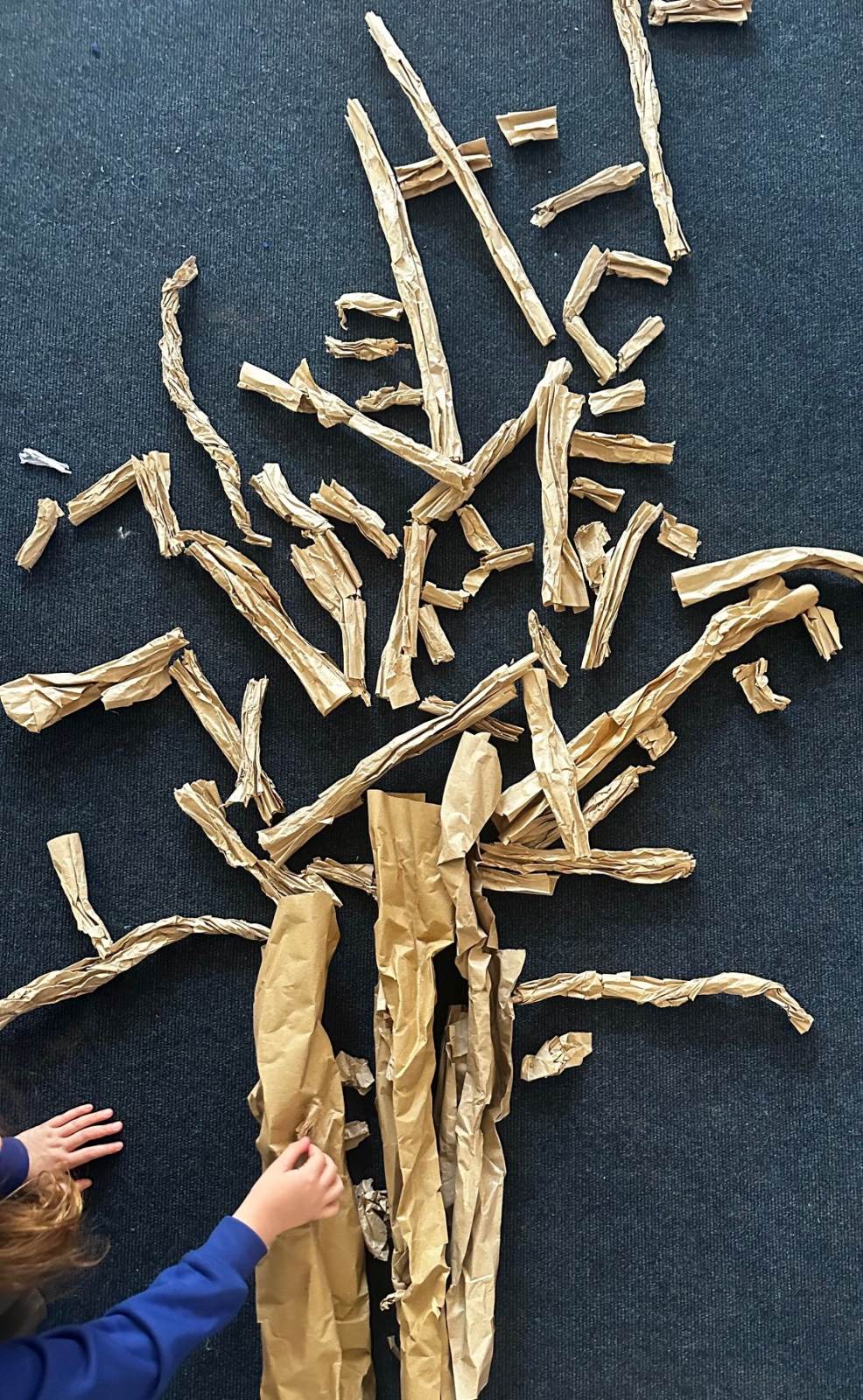 Week 1: As part of our Arts Week we learned about the apparition of Our Lady of Banneux. We created a winter tree to feature as part of a large art work we are making with Year 1 for the school hall. Each child had one piece of brown paper that they were asked to crumple and tear. They added them one by one to build the tree.